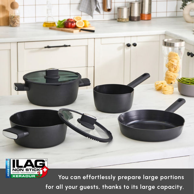 Karaca Swiss Crystal Midnight set posuđa pruža zdravije kuhanje, vrhunsku funkcionalnost i moderan crni dizajn za svaku kuhinju.