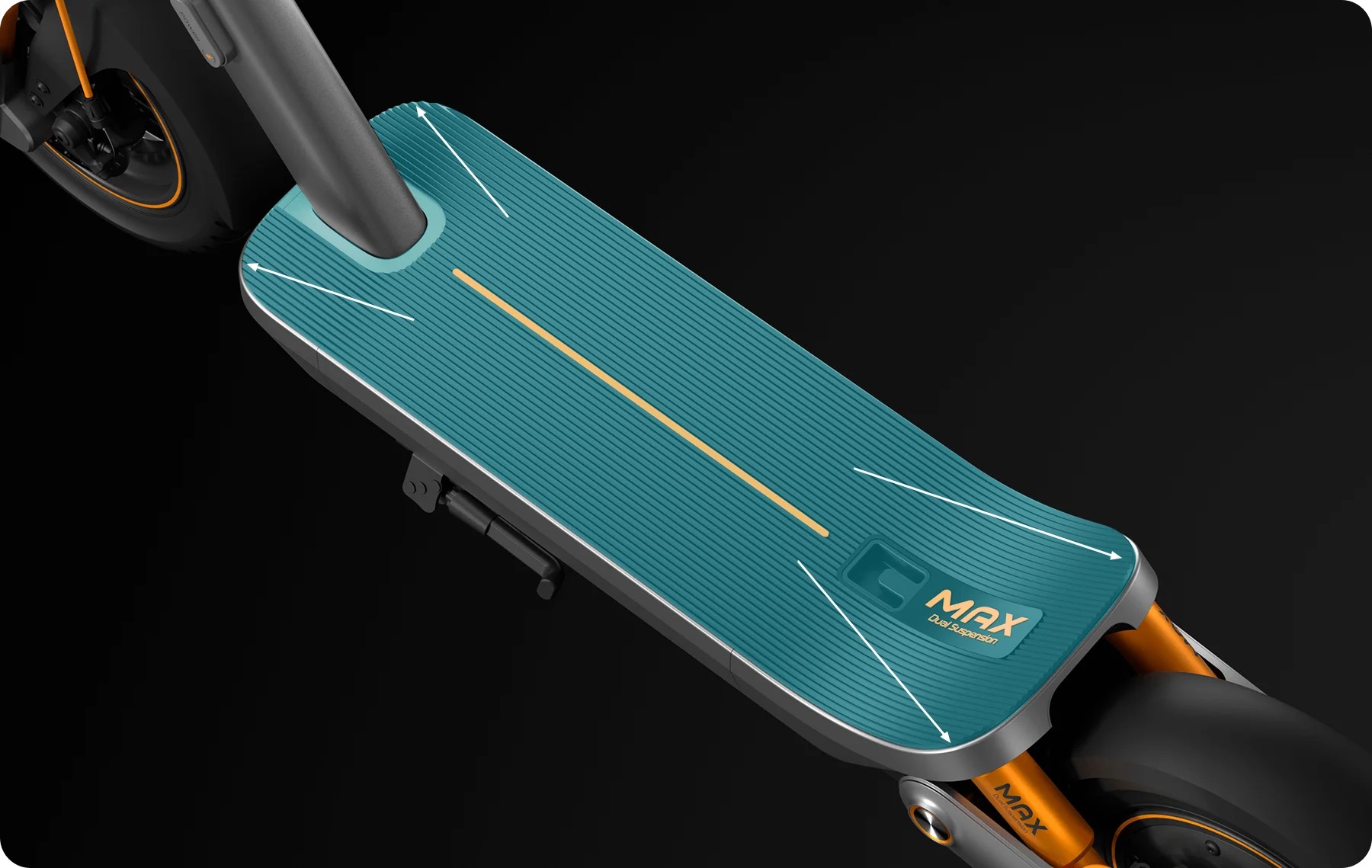 Sustav ovjesa skutera ima prednju oprugu vilice s dugim hodom od 45 mm i stražnje dvostruke opruge.