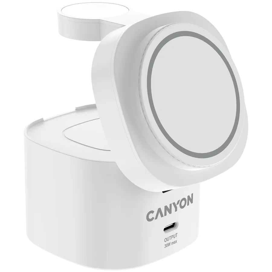 Canyon 4 in 1 Wireless Charging Stand, 30W max, 65W punjač i 1M kabel, bijeli, CNS-WCS405W