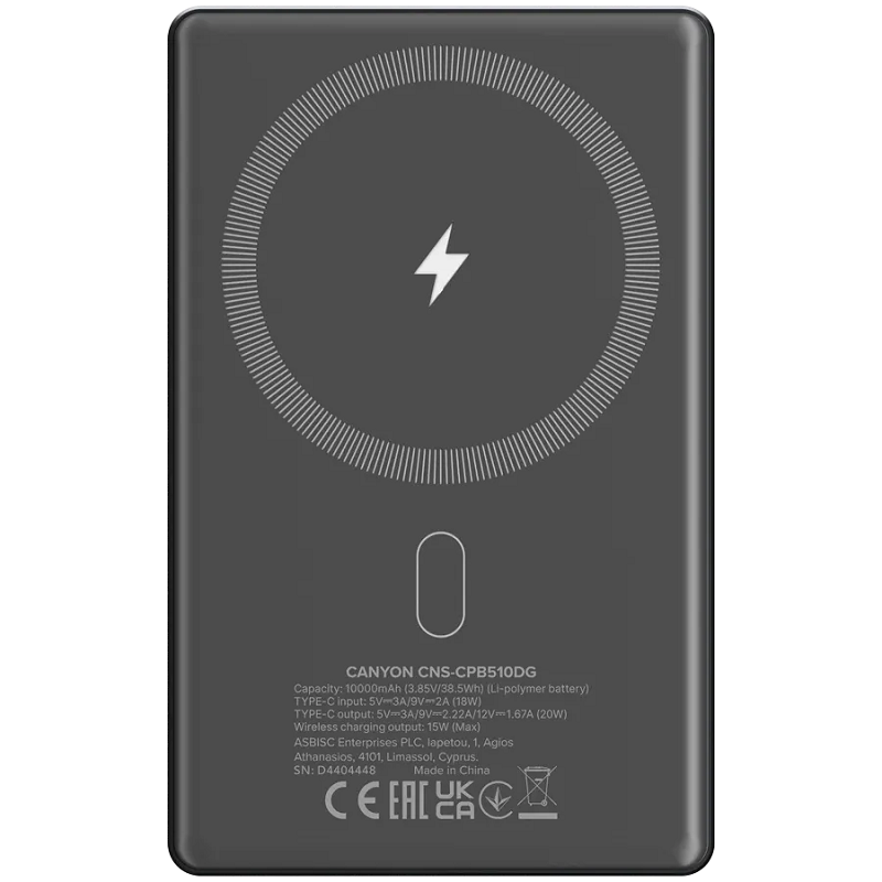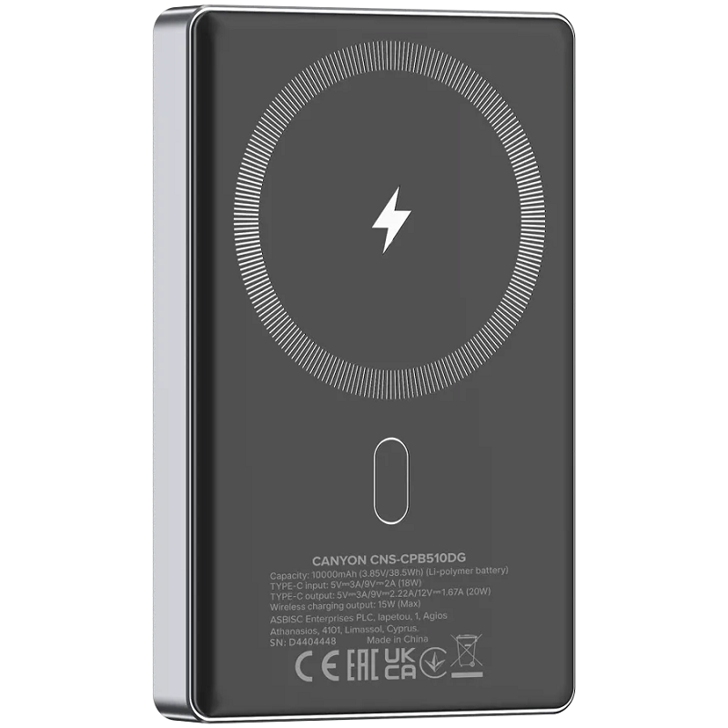 CANYON power bank, CNS-CPB510DG, OnPower 510 slim Magnetic 10000 mAh PD20W Tamno siviID EK000840687