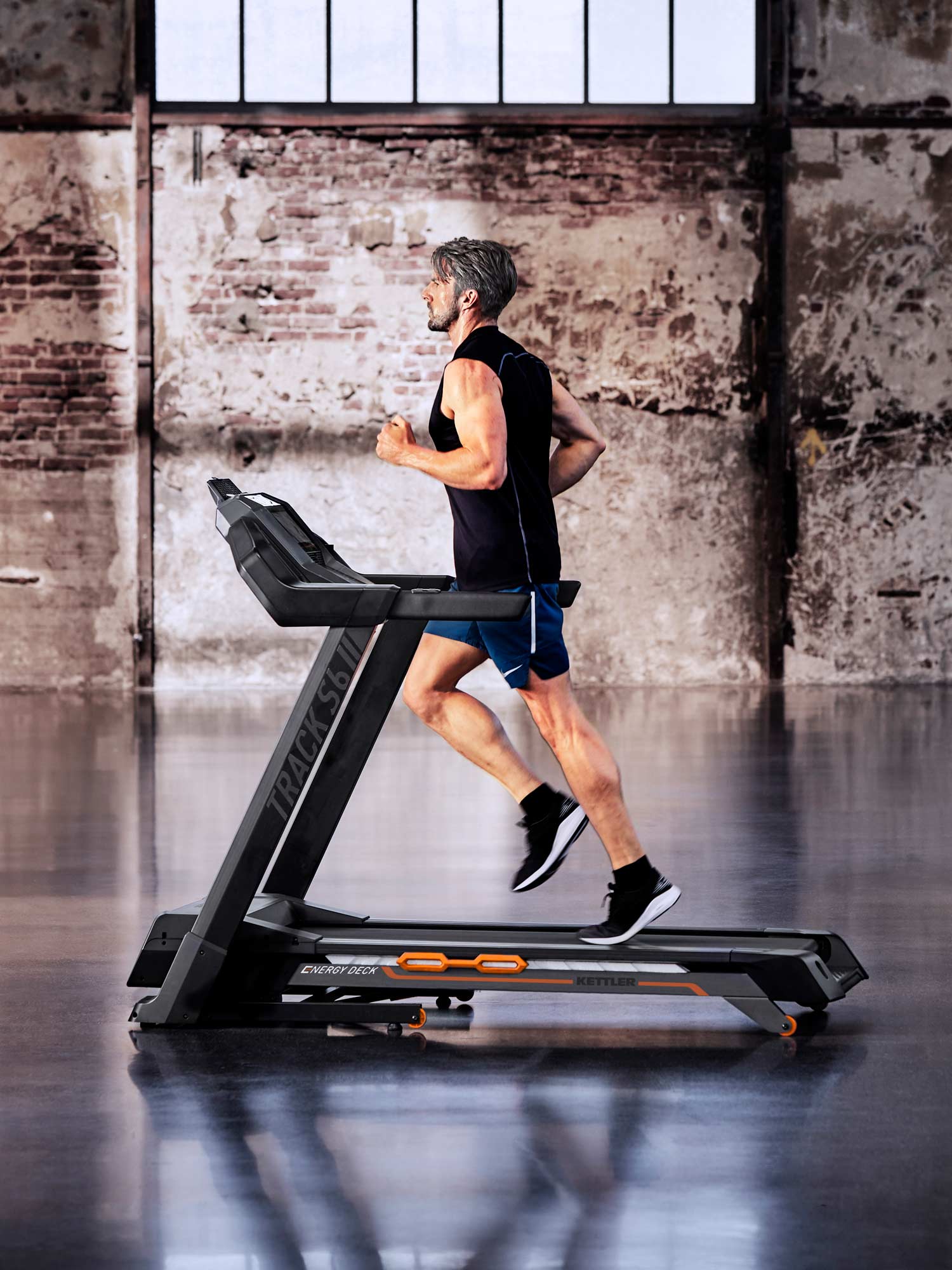 KETTLER ENERGY DECK površina za trčanje postavljena je na energetske elemente radi povećanja snage mišića zahvaljujući Energy Rebound-u, uz optimalnu apsorpciju vibracija. Traka ima ugrađeni zvučnik (povezivanje putem Bluetooth-a), ventilator, držač za tablet sa sigurnosnom kopčom, sigurnosni ključ, transportne točkove i kompenzaciju visine. Tablet nije uključen.