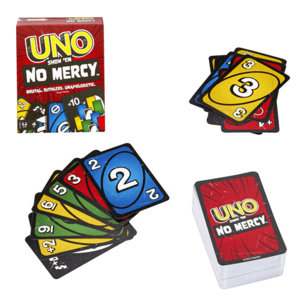 UNO No Mercy je savršen izbor za večeri pune smijeha, napetosti i – nimalo milosti. Sretno i ne zaboravite: u ovoj verziji UNO-a, prijateljstva su na kušnji!