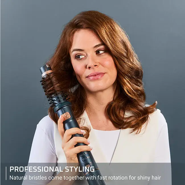 Rowenta Air Rotate UB9920E0 rotirajuća četka na vrući zrak omogućava profesionalni volumen i sjaj kao iz salona, uz dugotrajne rezultate. Zahvaljujući brzoj rotaciji, snažnom protoku zraka i ionskoj tehnologiji, kosa ostaje glatka, bez kovrčanja i oštećenja.