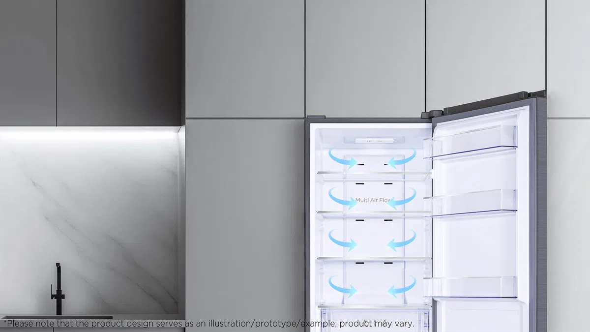 Hladan zrak se ravnomjerno raspoređuje na svakoj razini skladištenja hrane. Bolja cirkulacija zraka i brži povratak na ciljanu temperaturu jamče bolje očuvanje hrane.
