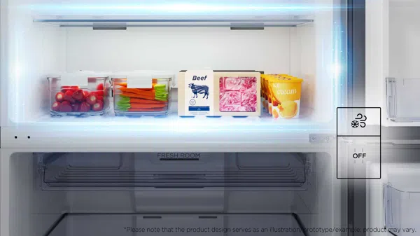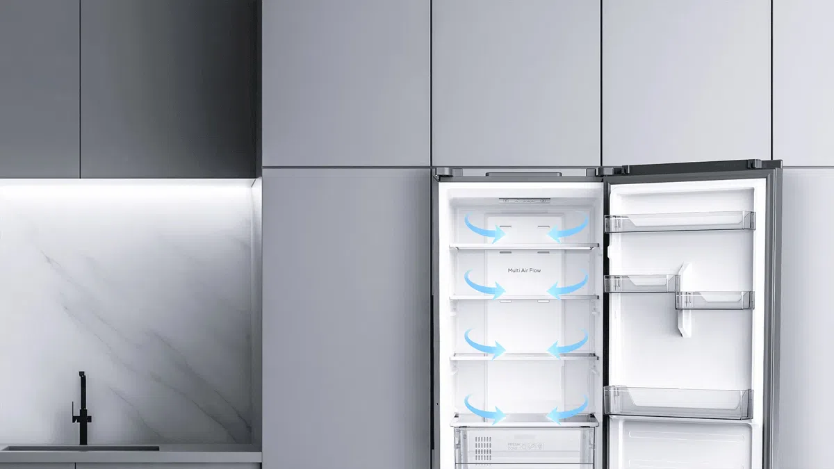 Hladan zrak se ravnomjerno distribuira na svakoj razini skladištenja hrane. Bolja cirkulacija zraka i brži povratak na ciljanu temperaturu jamče bolje očuvanje hrane.