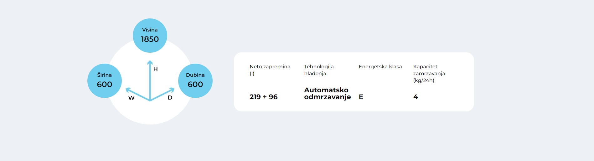 | Volumen prostora zamrzivača | 96 l |