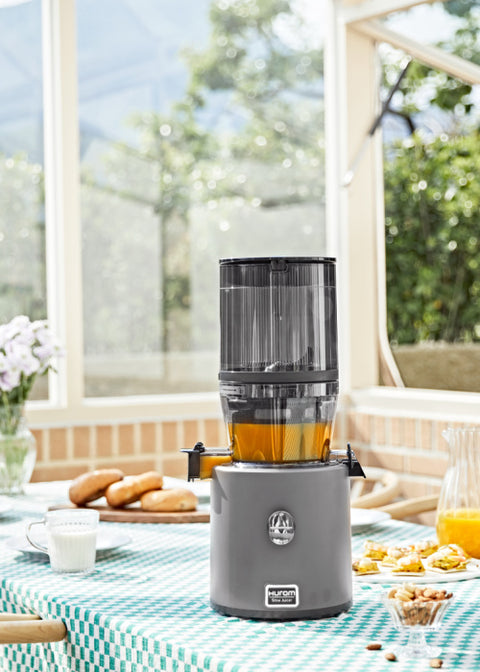 Hurom izdvaja sirove sastojke pri niskoj brzini rada kako bi sačuvao hranjive tvari iz voća i povrća što je više moguće. Uživajte u svježim i prirodnim sokovima.