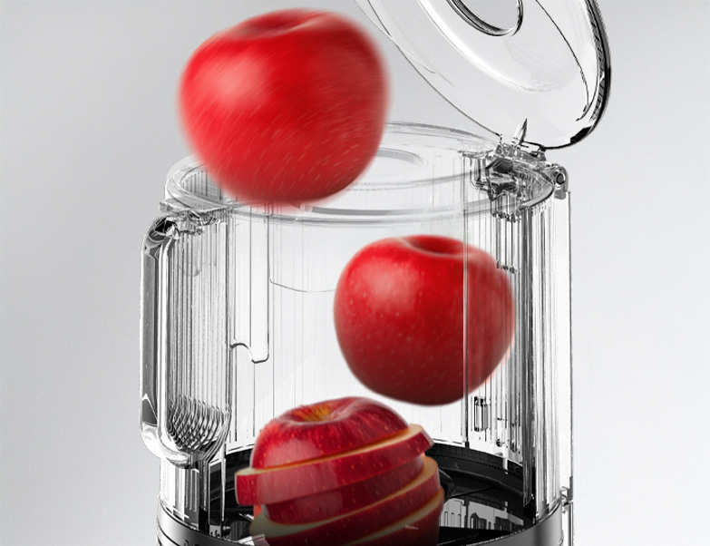 Zahvaljujući prostranom pametnom lijevku, sastojke poput jabuka, šargarepa ili celera možete ubaciti cijele – bez prethodnog rezanja. Snažan puž automatski reže i preša namirnice, štedeći vam vrijeme i olakšavajući pripremu.